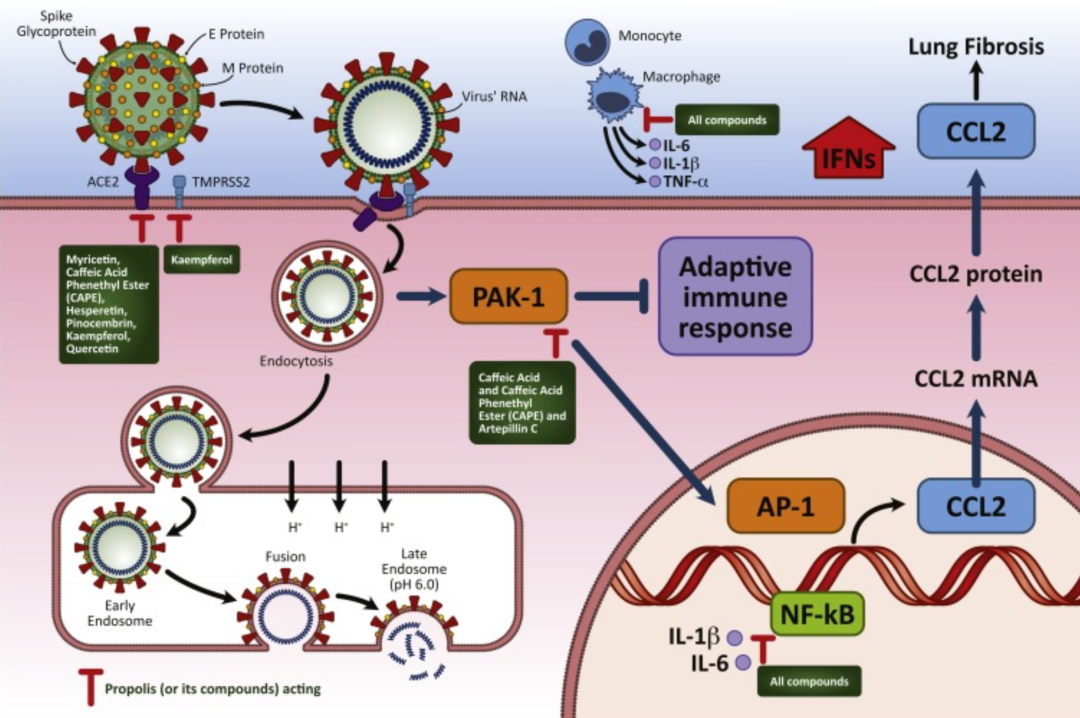靶向病毒抑制:部分蜂膠成分與SARS?CoV?2關(guān)鍵蛋白(如 3CL^pro、ACE2)具有較高結(jié)合親和力,有潛在抗病毒作用
